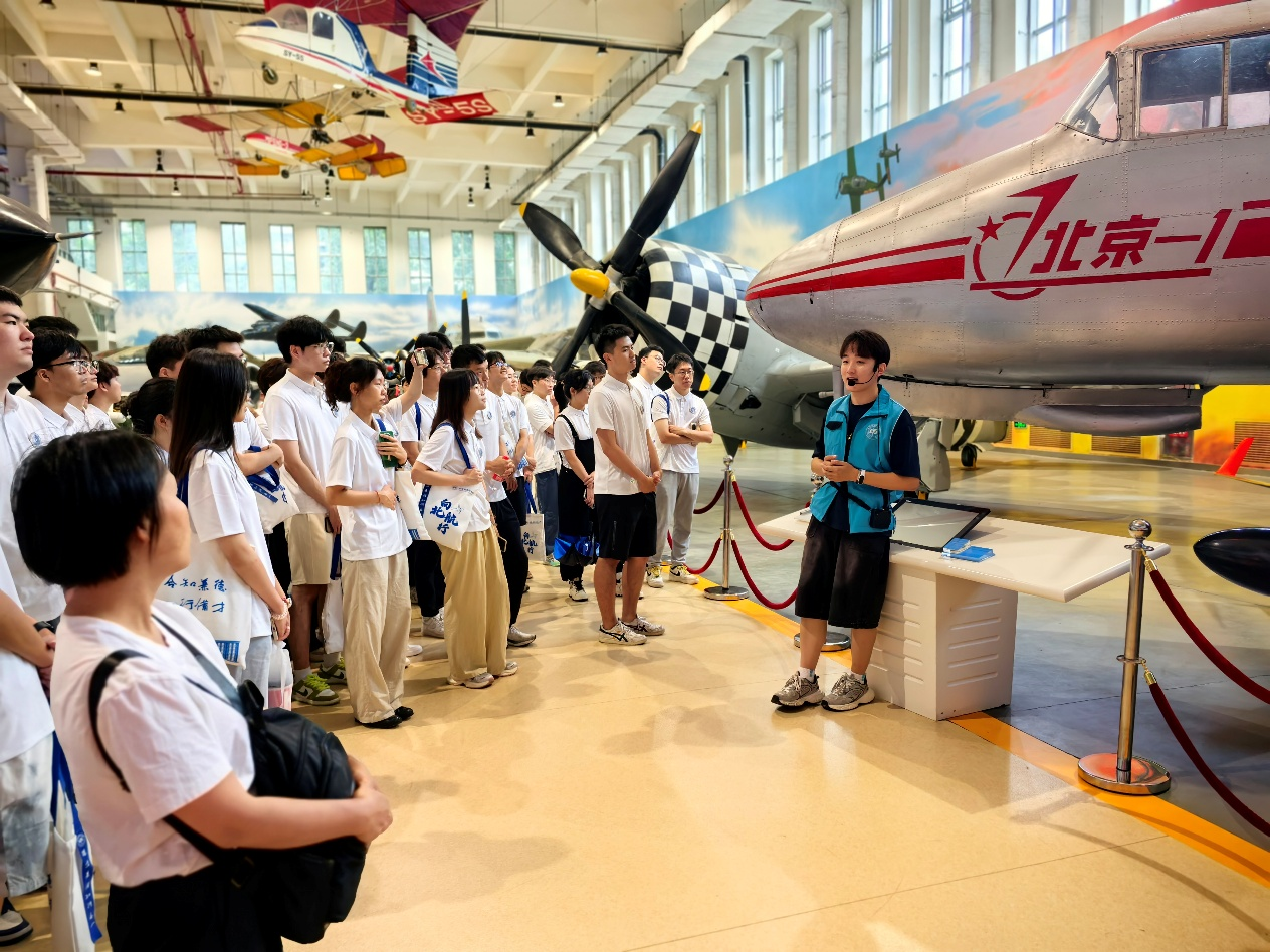 7月15日上午,同学们在研究院老师的带领下开启了校园探索之旅。从镌刻着"空天报国"的校史馆,到收藏"北京一号"飞机的航空航天博物馆。学生们通过参观学习,近距离了解北航的科技发展历史和精神文化传承,深刻体会北航"敢为人先"的创新基因。同学们感叹:"每一件陈列品都在讲述中国航空人的奋斗故事。"